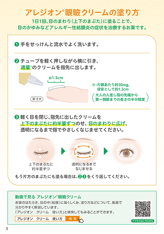 1日1回、上下のまぶたに塗ることで、花粉皮膚炎による目の痒みを抑える効果があります。
